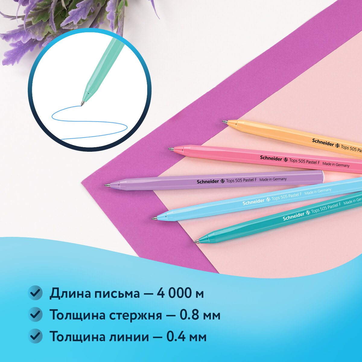 Отзывы на Набор шариковых ручек Schneider Tops 505 F Pastel 4шт., синие, 0,8мм, корпус ассорти, блистер