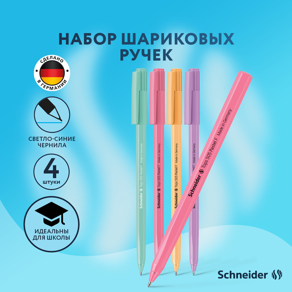 10 цен на Набор шариковых ручек Schneider Tops 505 F Pastel 4шт., синие, 0,8мм, корпус ассорти, блистер