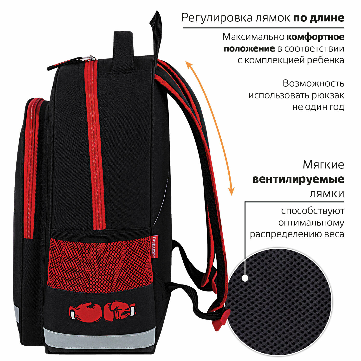 Отзывы на Рюкзак школьный для мальчика, ранец для подростка спортивный, портфель детский в школу, 1 отделение, 3 кармана, Пифагор School Boxing,