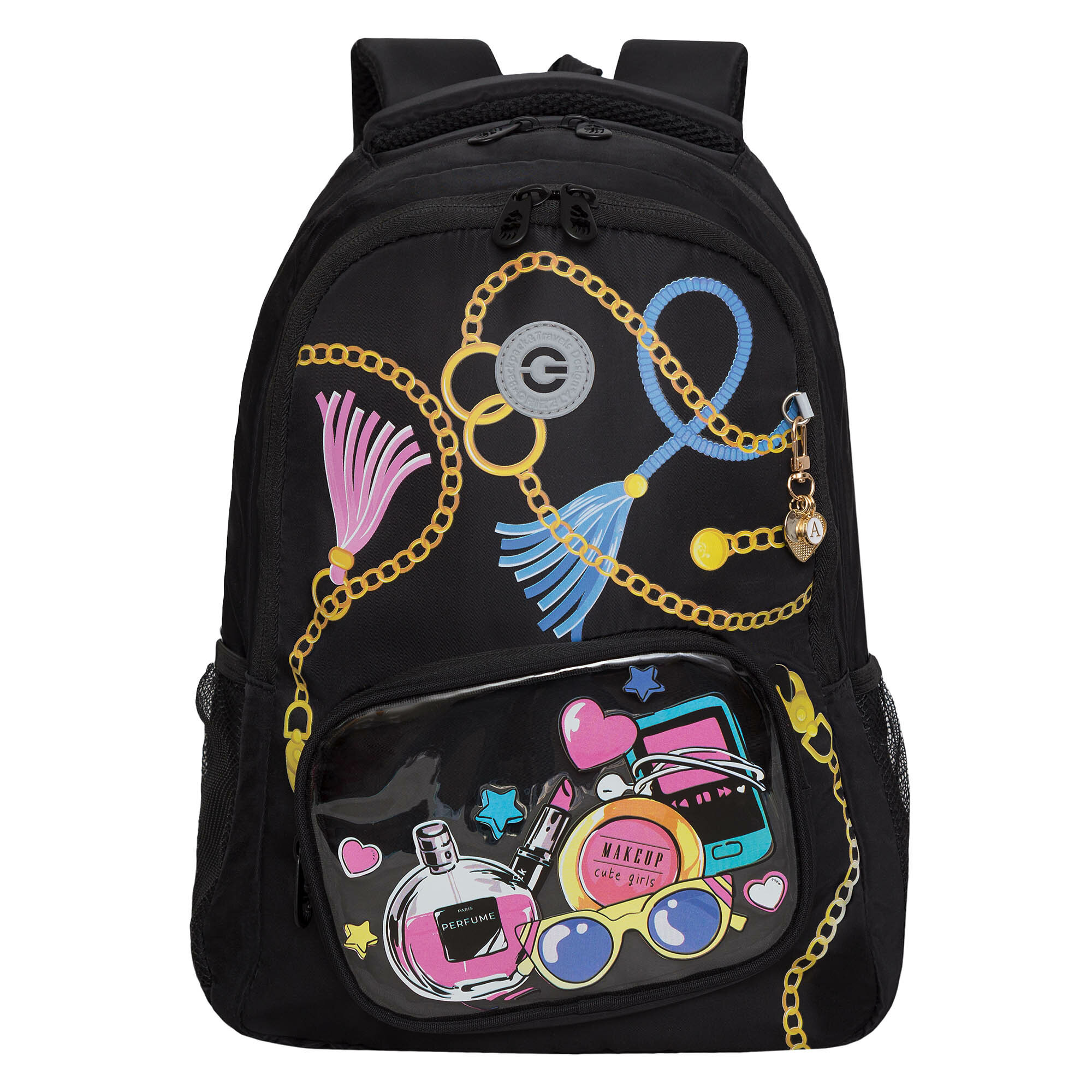 Рюкзак школьный, 39 х 30 х 20 см, Grizzly, эргономичная спинка, + брелок, чёрный 4 187 ₽