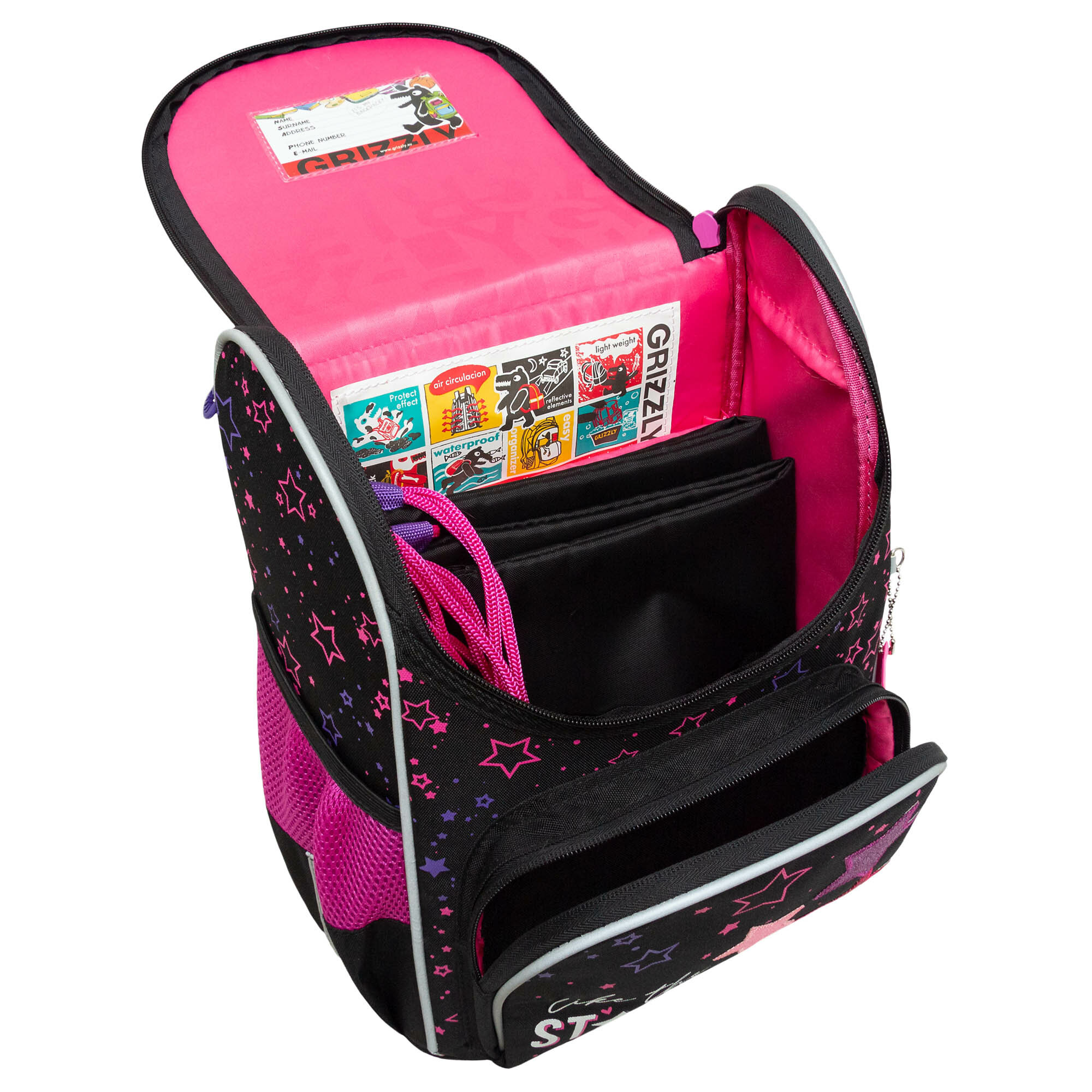 Ранец Grizzly анатомическая спинка, с мешком для обуви, STARS, 33х25х13, RAm-484-7/1 4 680 ₽
