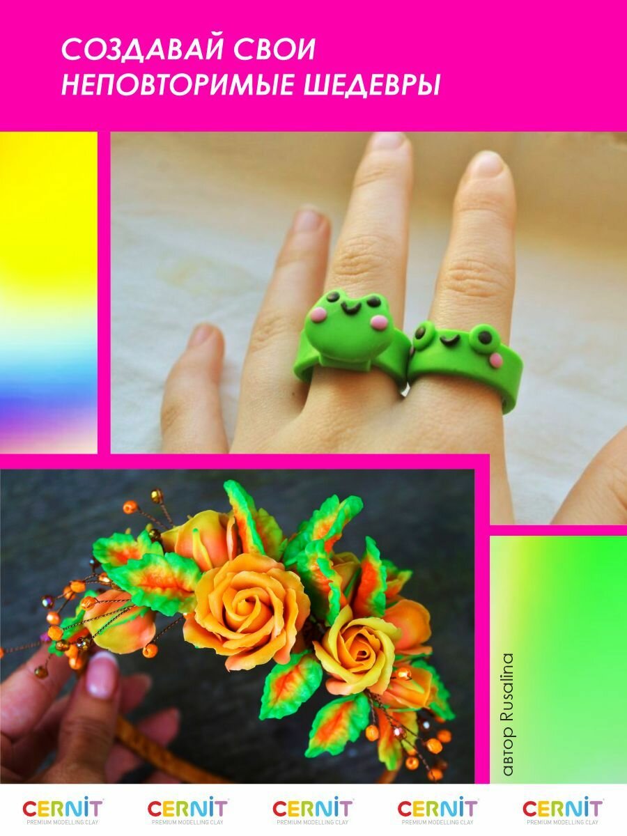 10 цен на Пластика полимерная запекаемая 'Cernit 'NEON' неоновая, 56 г (700 неон-жёлтый)