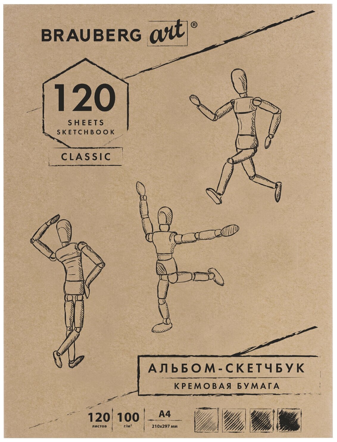 Скетчбук Brauberg крафт-бумага 80 г/м2, 142х212 мм, 120 л, гребень, твердая обложка, art debut