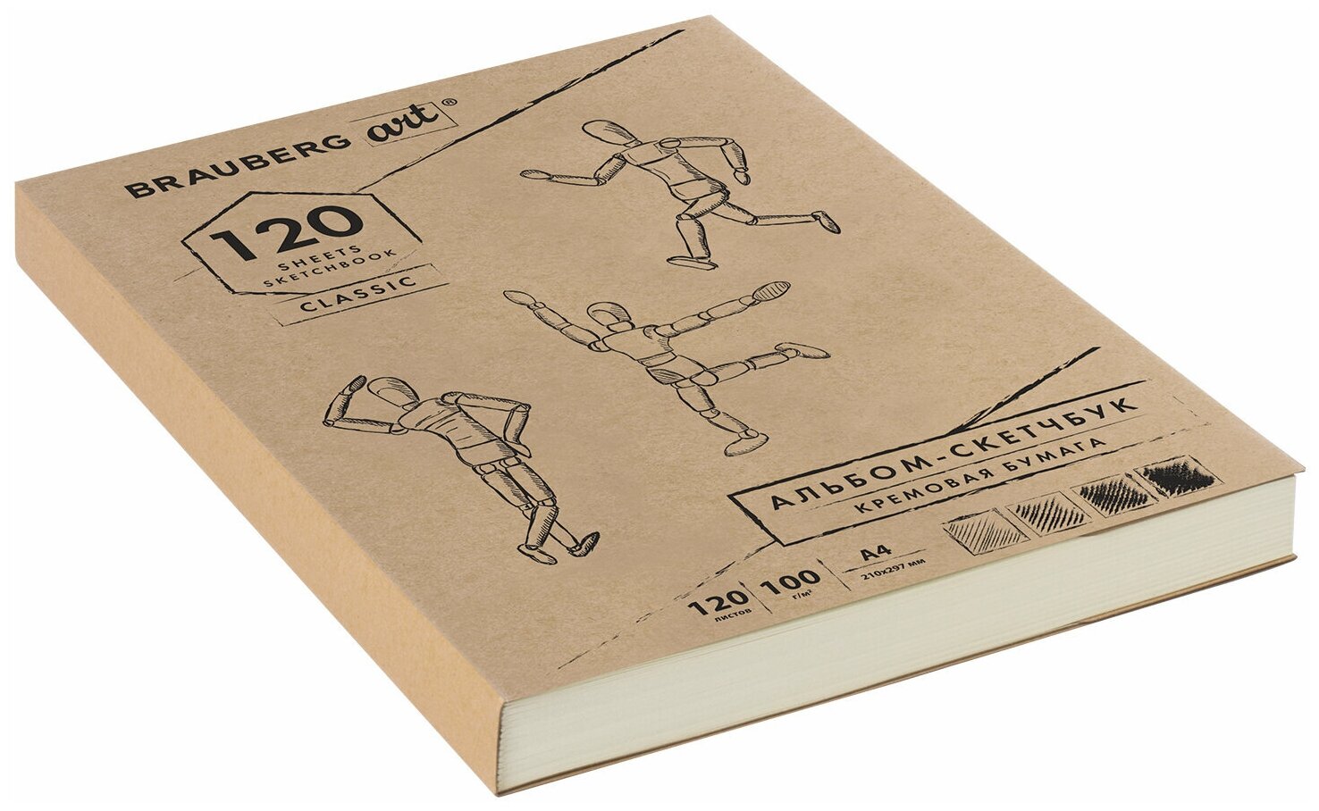 Скетчбук, крафт-бумага 80 г/м2, 195х195 мм, 120 л, гребень, твердая обложка, BRAUBERG ART DEBUT, 113000 (арт. 113000) 295 ₽