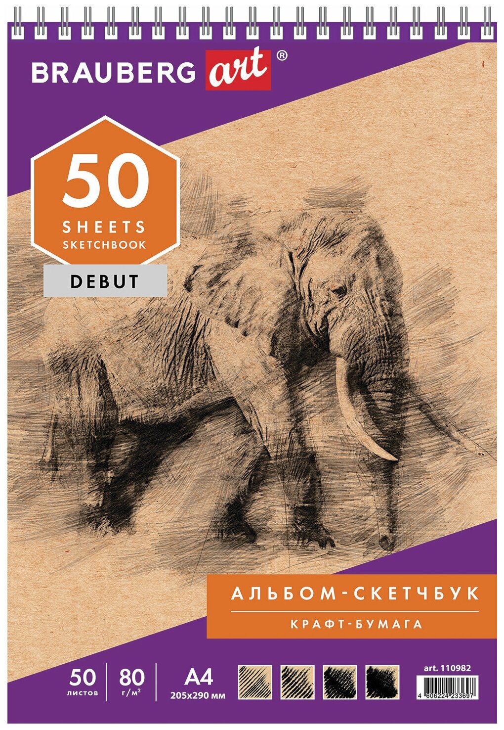 Скетчбук, крафт-бумага 80 г/м2, 142х212 мм, 120 л, гребень, твердая обложка, BRAUBERG ART DEBUT, 112998 (арт. 112998) 298 ₽