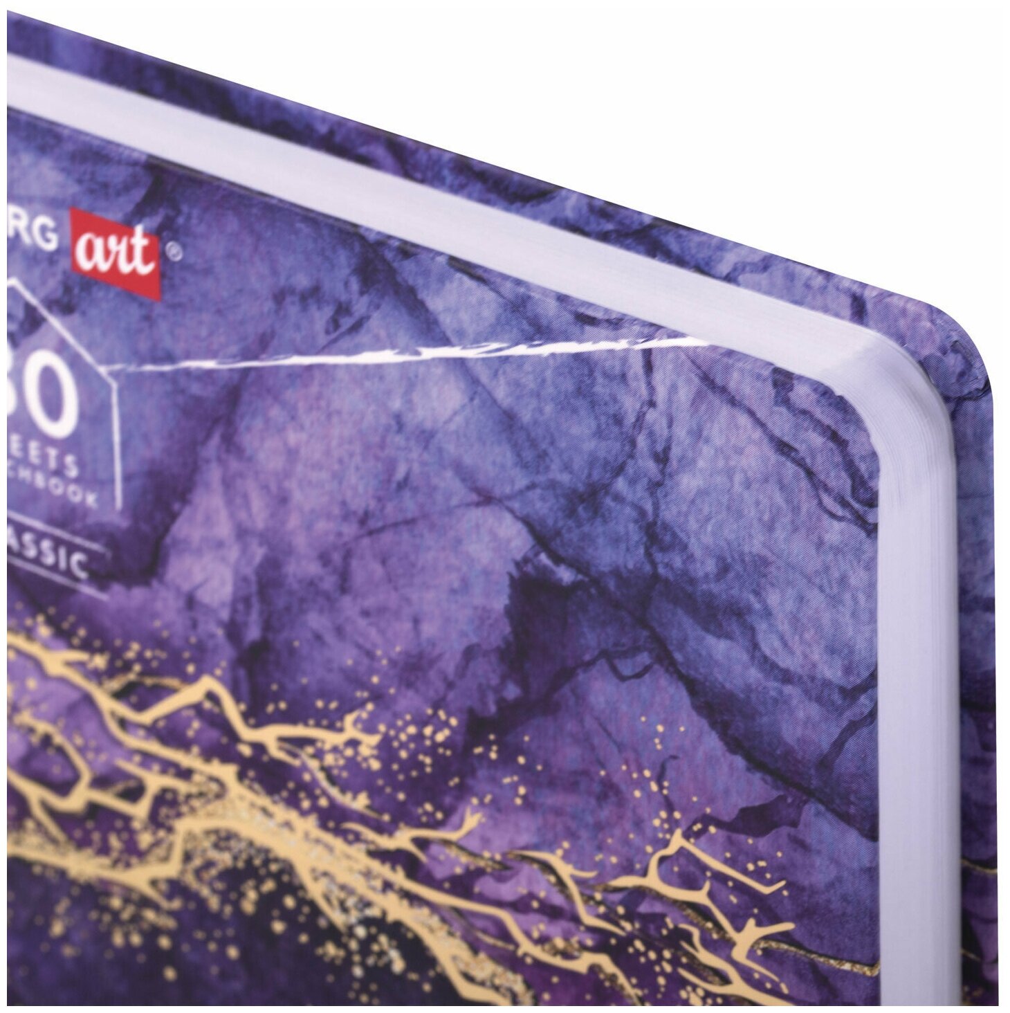 Скетчбук, белая бумага 160 г/м2, 145х203 мм, 80 л, твердая обложка, BRAUBERG ART CLASSIC "Мрамор", 114592