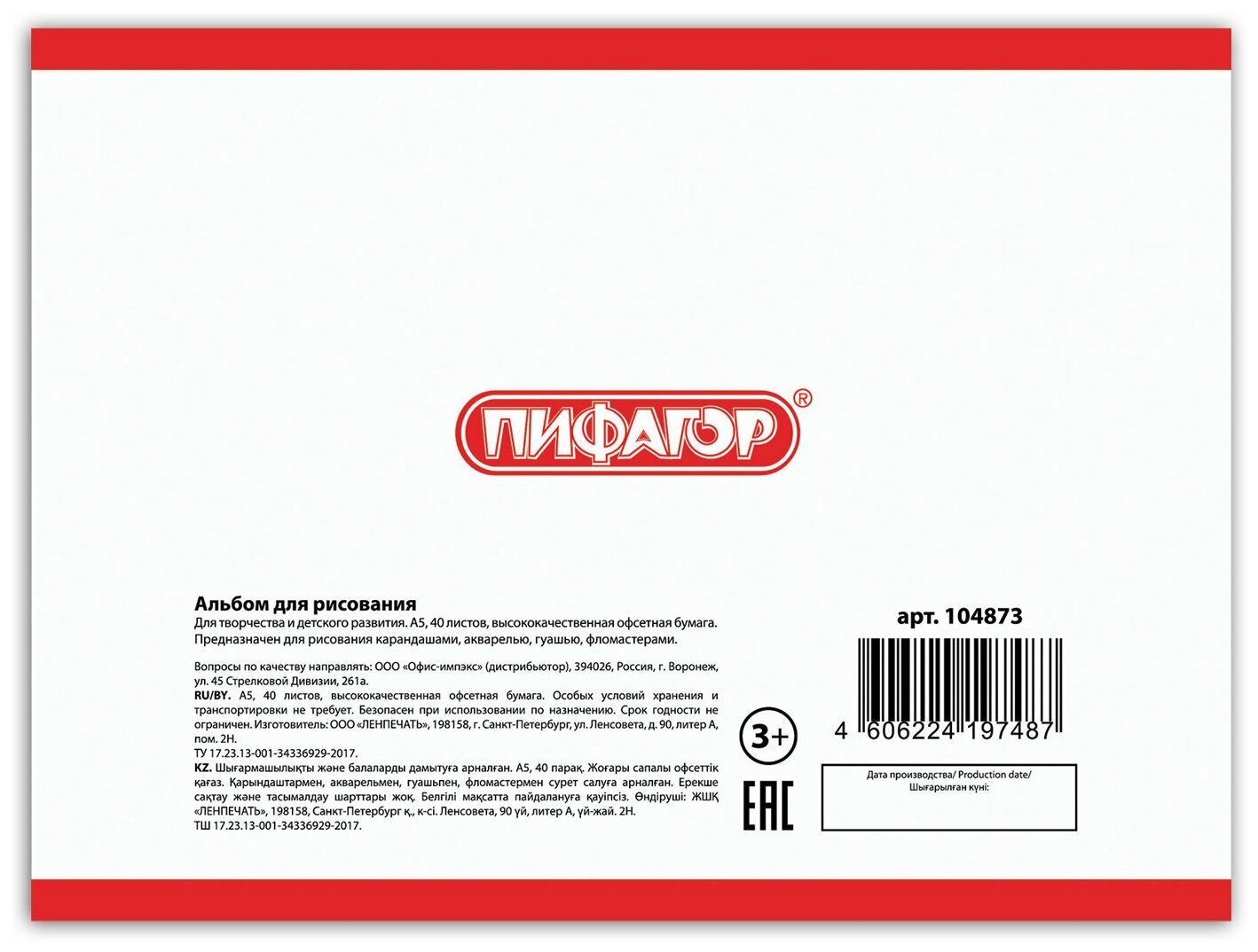 Альбом для рисования Пифагор А5, 40 листов, обложка офсет, "Природа", 1 шт (104873) информация: