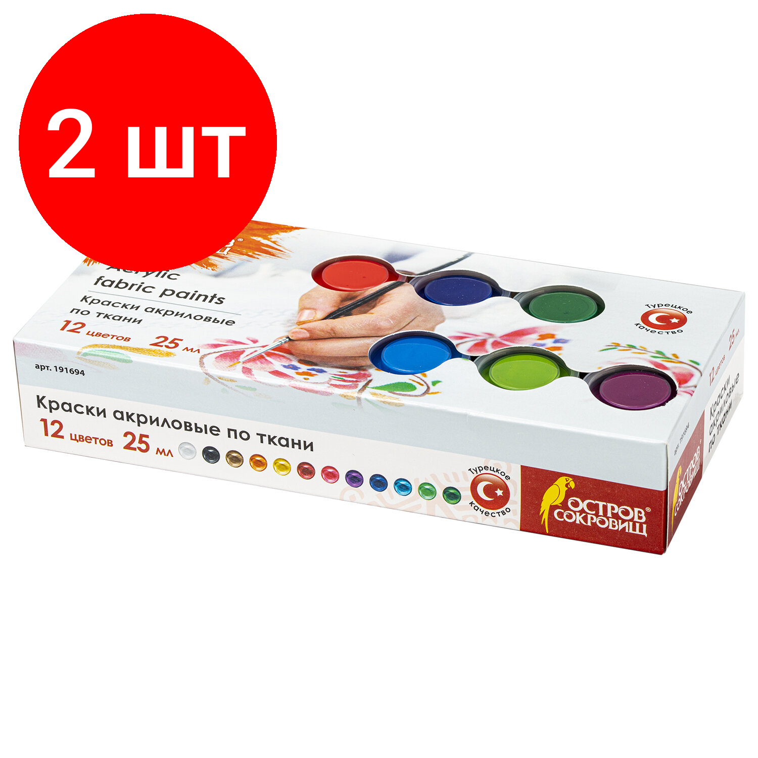 Комплект 2 шт, Краски акриловые по ткани остров сокровищ 12 цветов по 25 мл, 191694 информация: