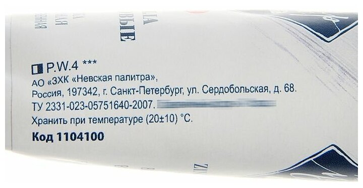 Краска масляная в тубе 46 мл, ЗХК "Мастер-класс", белила цинковые, 1104100 информация: