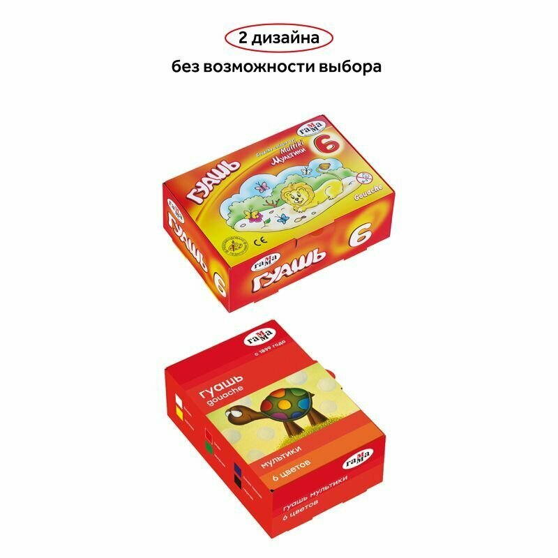 10 цен на 4 шт - Гуашь Гамма "Мультики", 06 цветов, 20мл, картон. упаковка