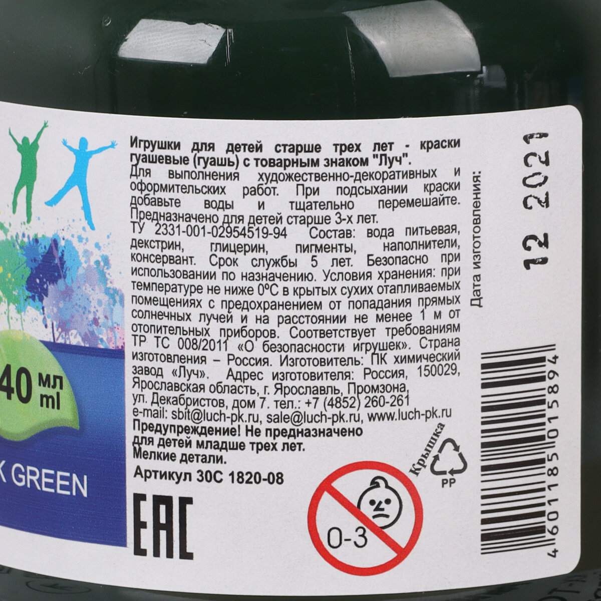 Гуашь Луч "Классика" 240 мл зеленая темная информация: