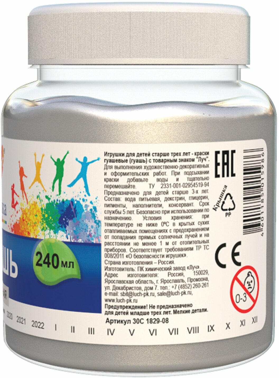 Луч Гуашь Классика, серебряная банка, 240 мл, 3 уп информация: