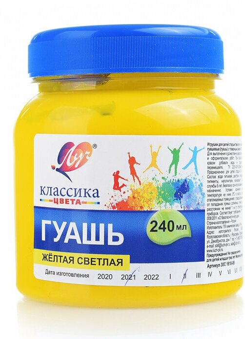 Гуашь 240мл Классика, желтая светлая Луч 30С 1818-08
