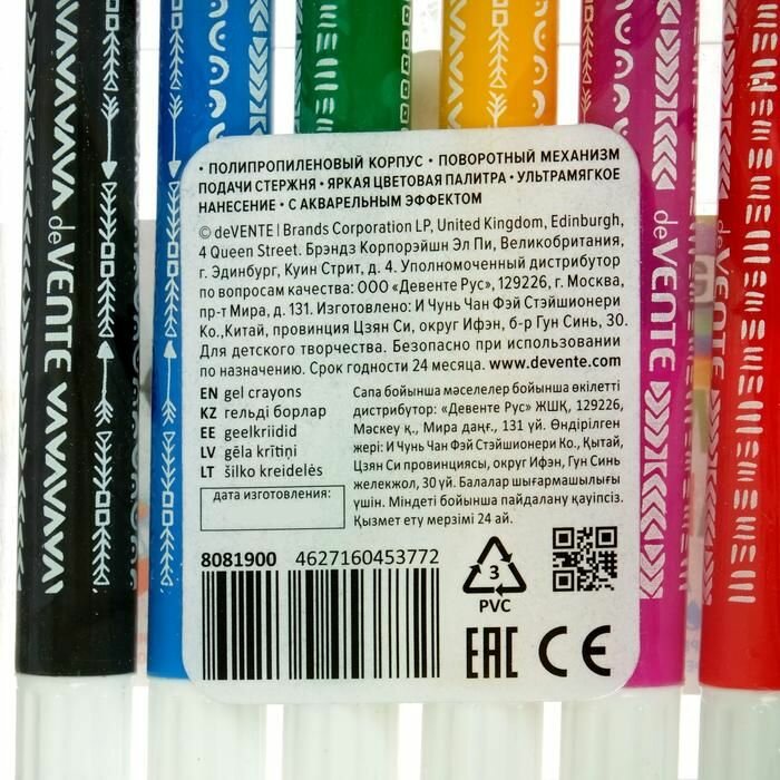 Мелки гелевые deVENTE 6 цветов, супермягкие, акварельные, поворотный механизм, блистер (6829019) информация: