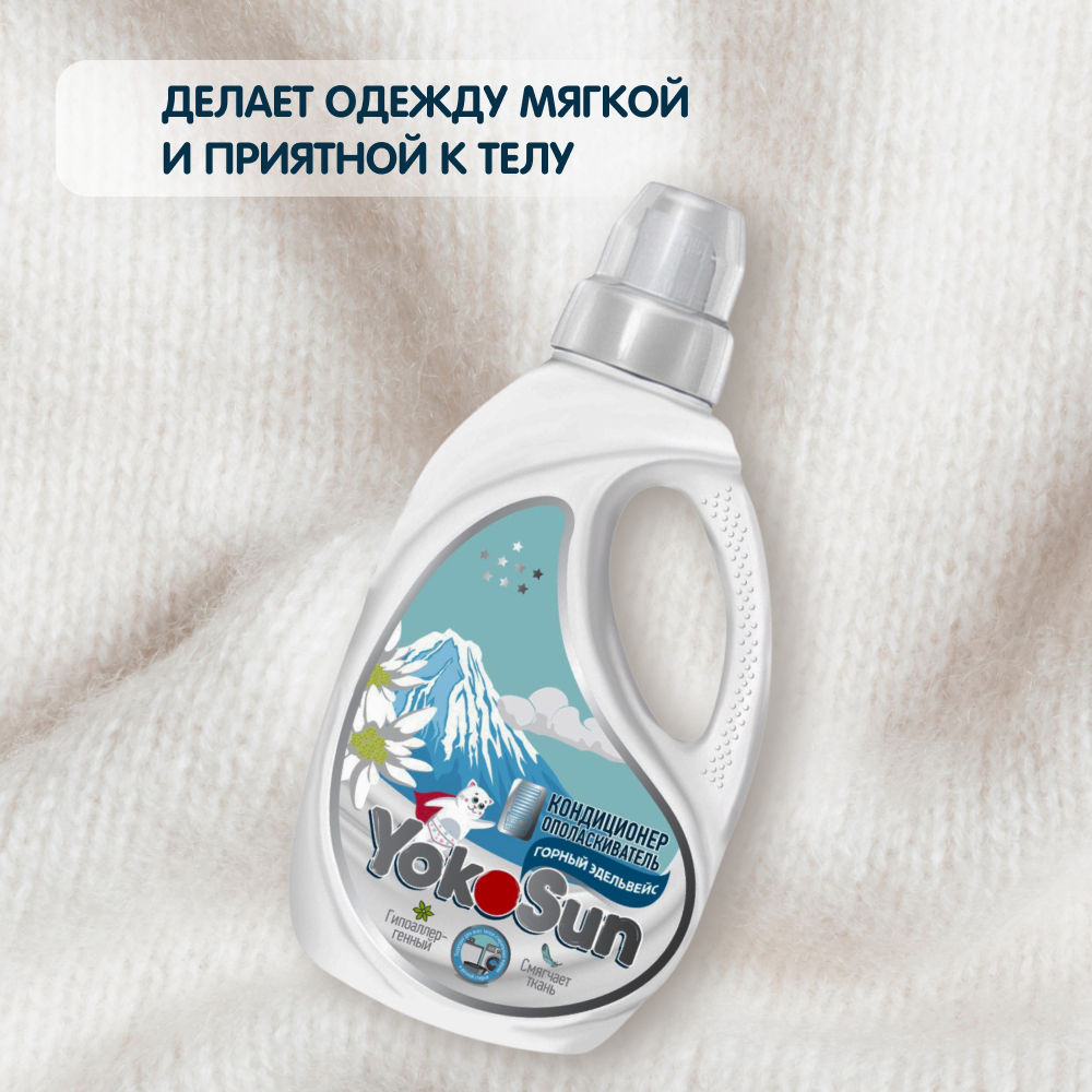 Кондиционер ополаскиватель для белья YokoSun "Горный эдельвейс" 1 л, для всех типов тканей, для детского белья информация: