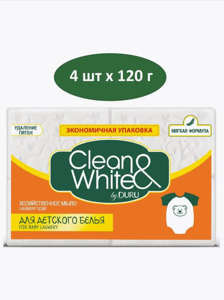 10 цен на Мыло хозяйственное Duru Clean&White Для детского белья, 4 куска по 120г