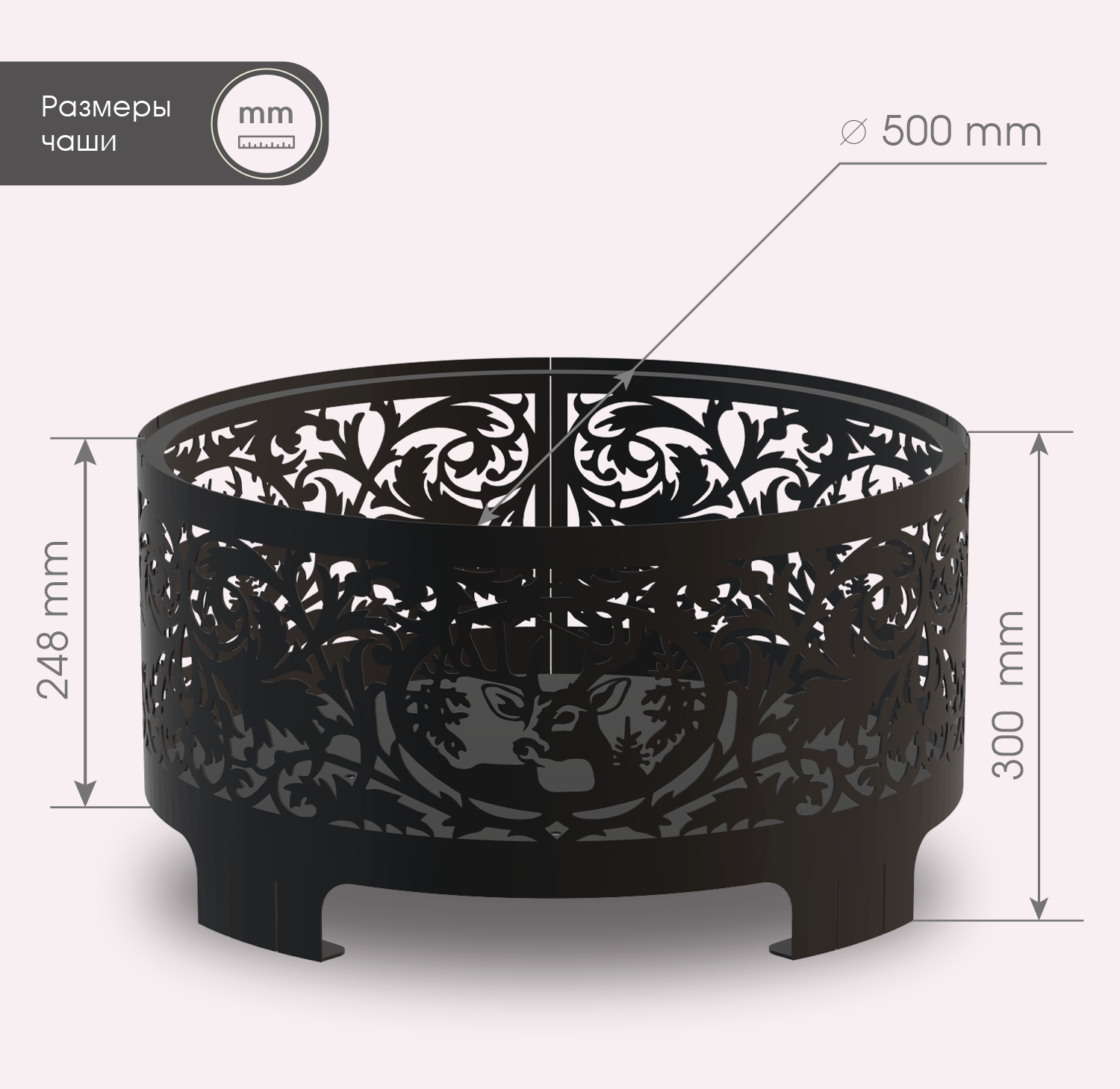 Костровая чаша Олени диаметр 50 см/ Чаша для костра FIRE-HOUSE