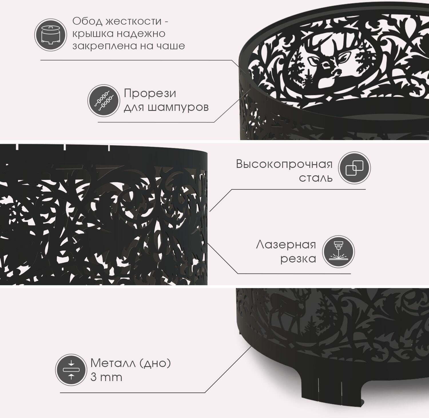 Отзывы на Комплект "Костровая чаша Олень с крышкой и решеткой гриль" 60см ТД Русский металл