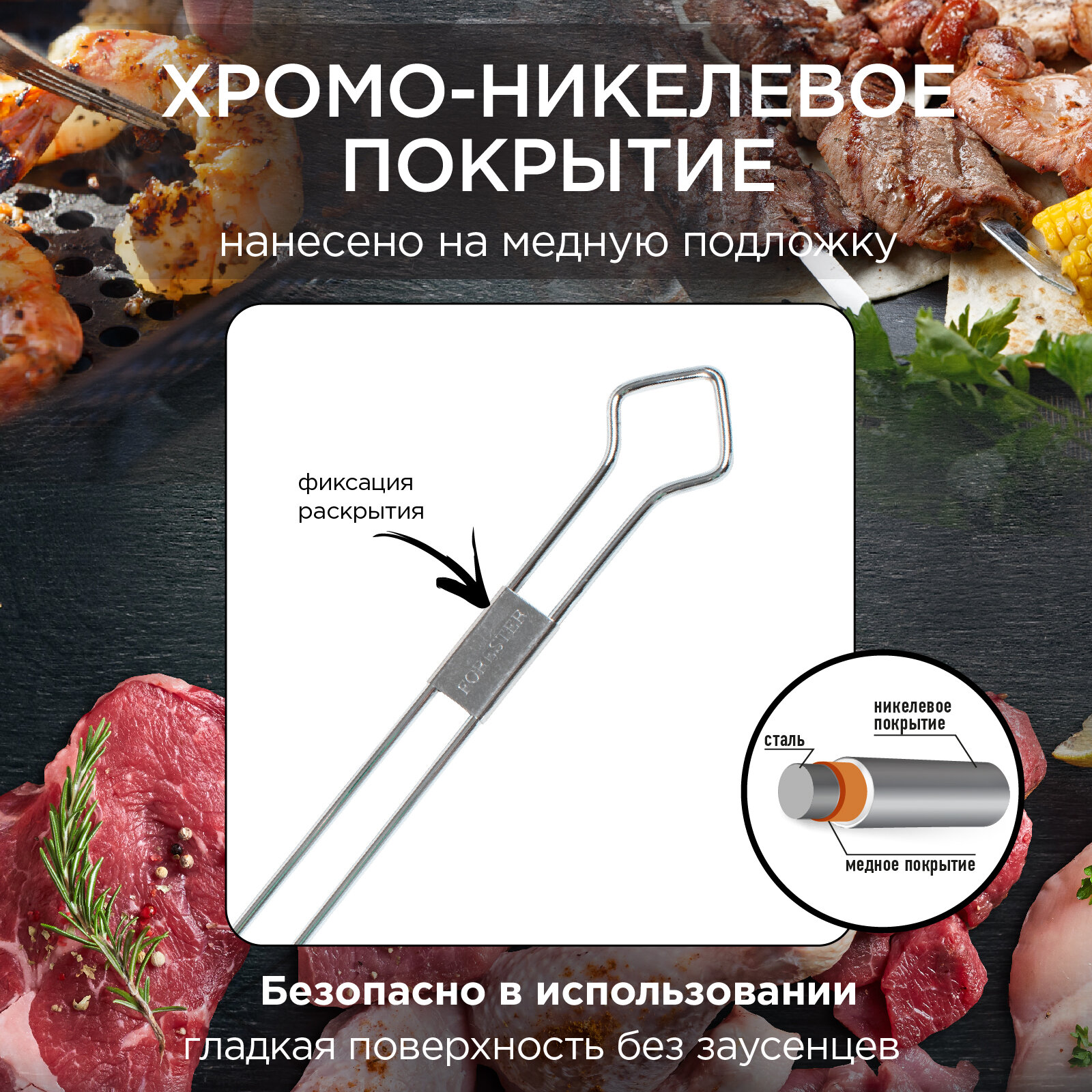 Отзывы на Набор двойных шампуров Forester, надежная фиксация, 50 см х 4 шт