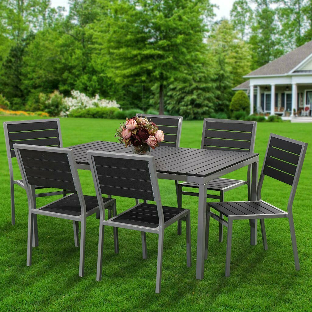 10 цен на Мебель садовая Green Days, Эвелина, черная, стол, 150х90х72 см, 6 стульев, 120 кг, YTCT012