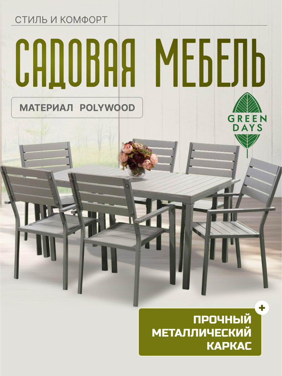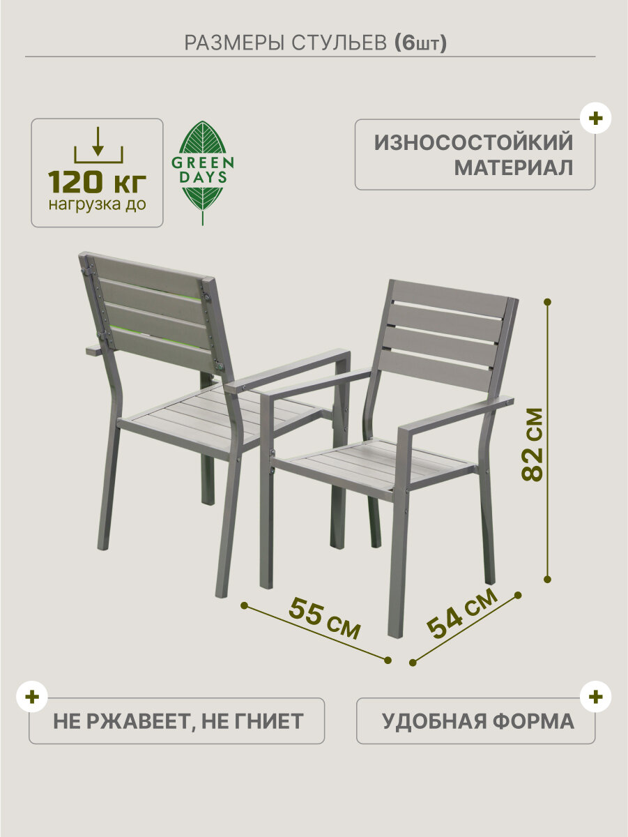 10 цен на Мебель садовая Green Days, Эллада, серая, стол, 140х70х70 см, 6 стульев, 120 кг, YTCT009-1