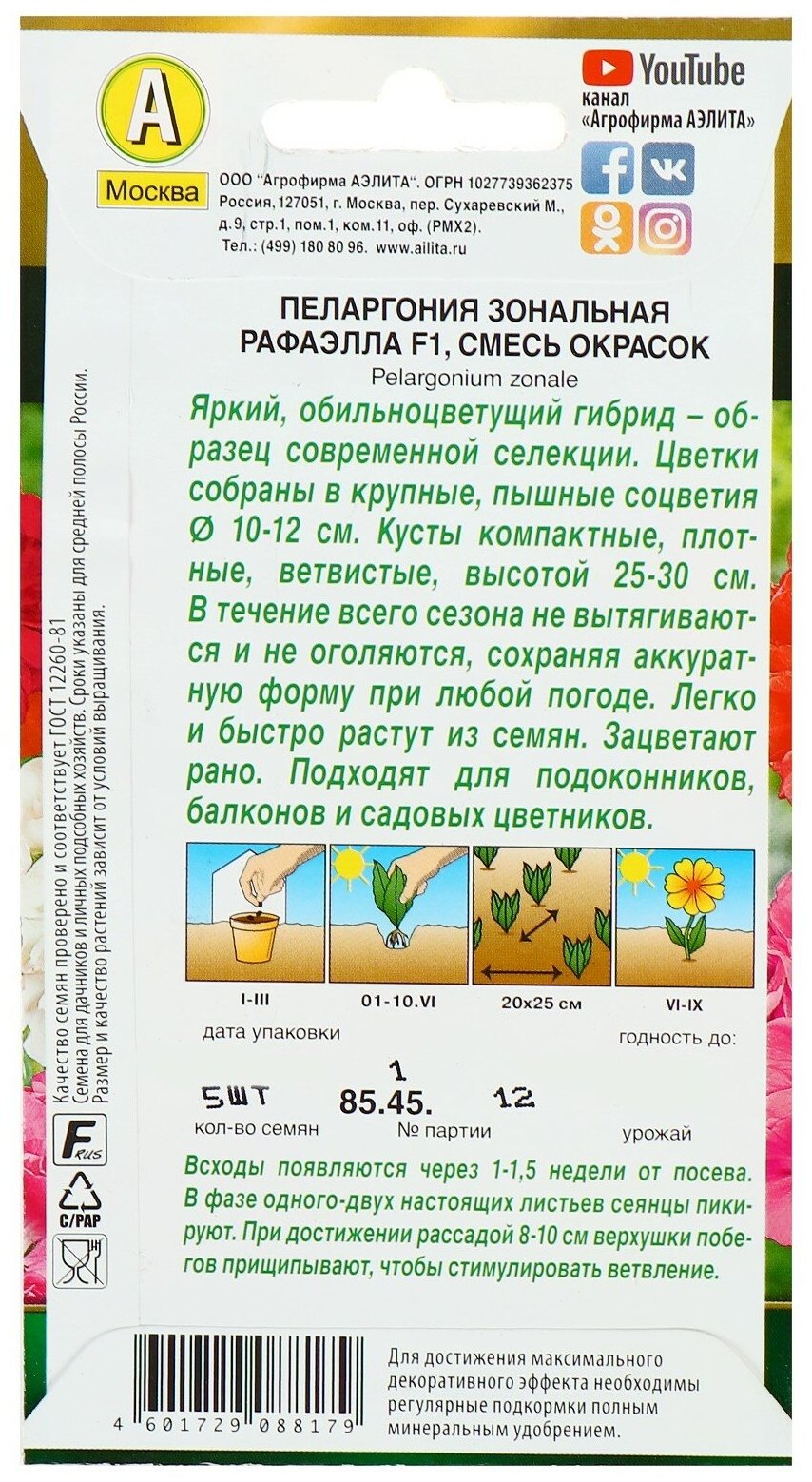Семена Пеларгония Рафаэлла F1, смесь (многолетние) (Аэлита) 5шт информация: