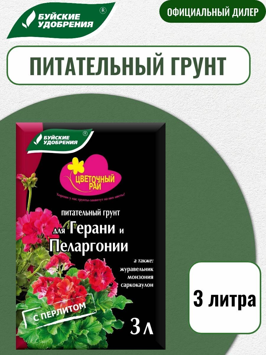 10 цен на Грунт Цветочный Рай для Герани и Пеларгонии, Буйские удобрения, 3л