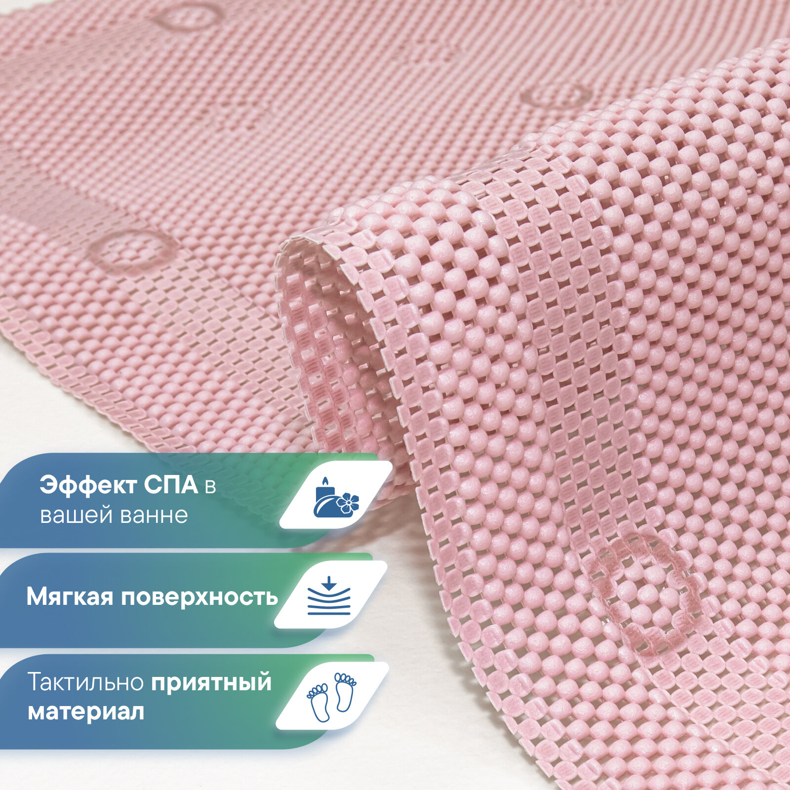 Отзывы на Коврик для ванны с присосками VILINA мягкий противоскользящий массажный 43х90 см "Лотос" розовый