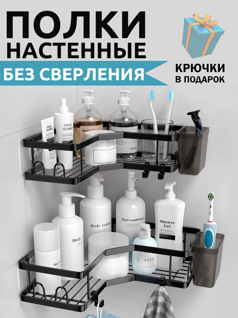 10 цен на Полка для ванной без сверления 2-х уровневая, 2 штуки