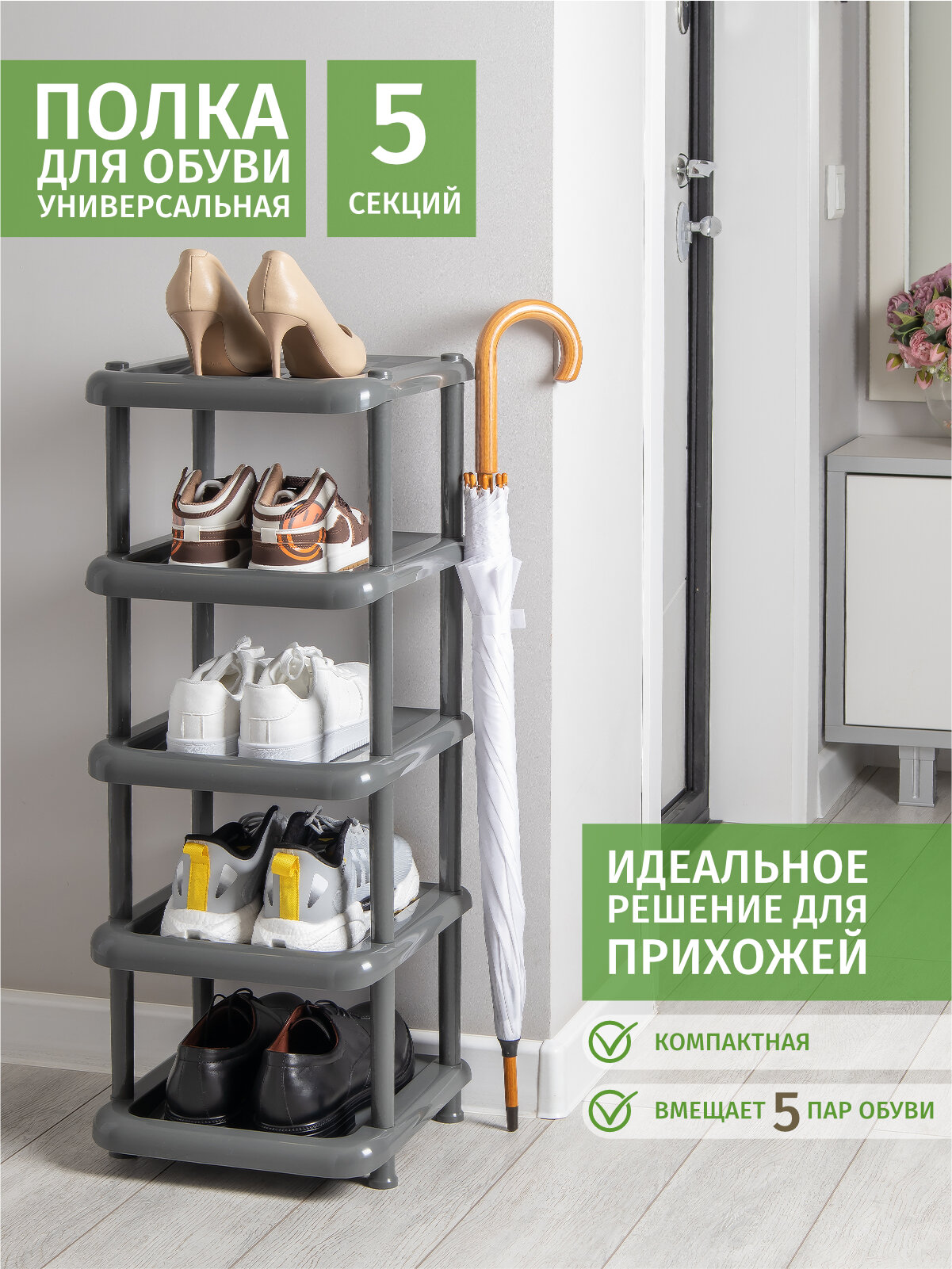 Пластиковая полка для ванной, обуви в прихожей, 5 ярусов, графитовый, 31*31*83 см информация: