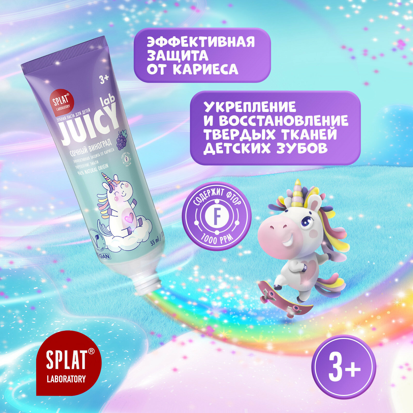 Сплат JUICY LAB GRAPE / виноград детская зубная паста со фтором, 55 мл информация: