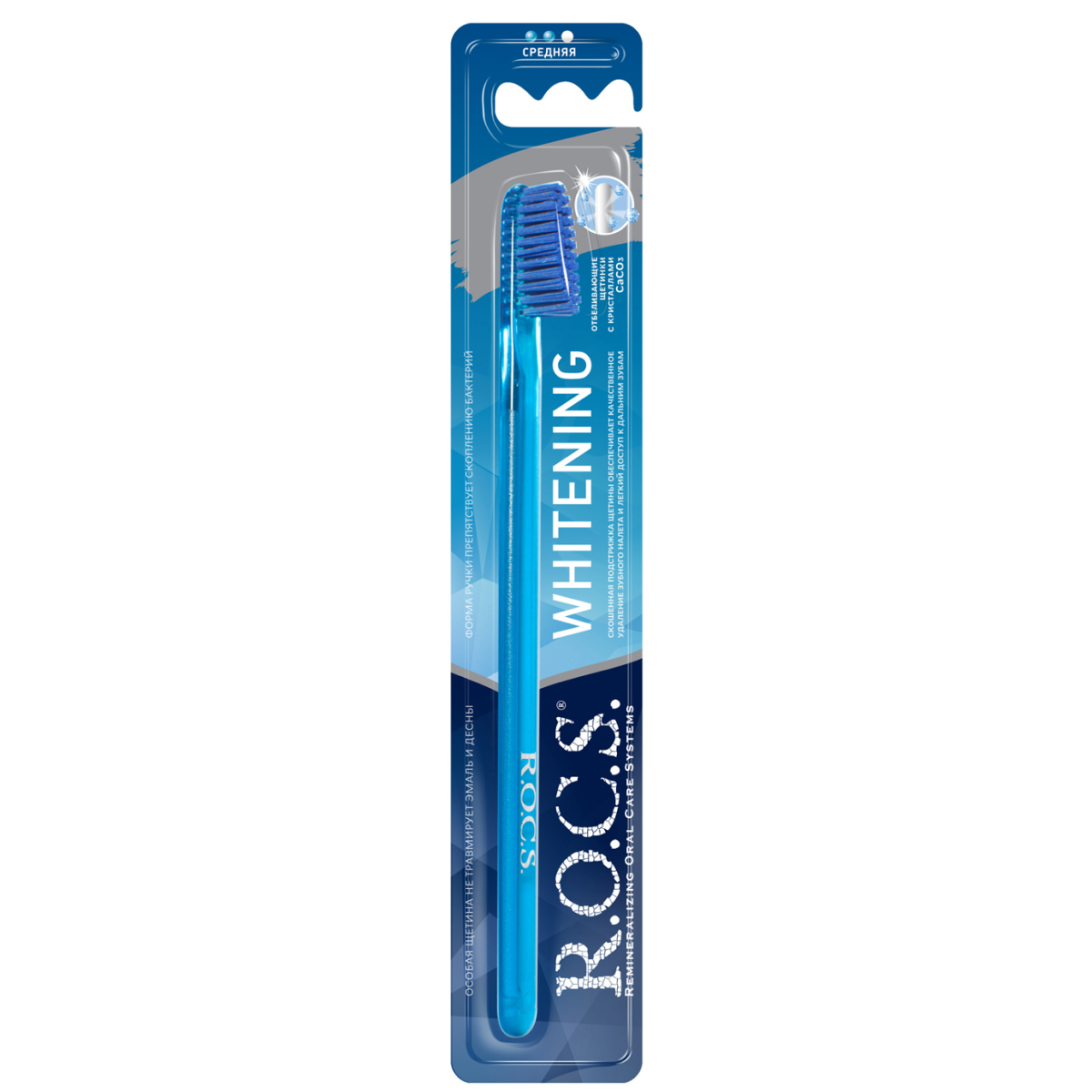 Зубная щетка R.O.C.S. Отбеливающая средней жесткости, синяя информация: