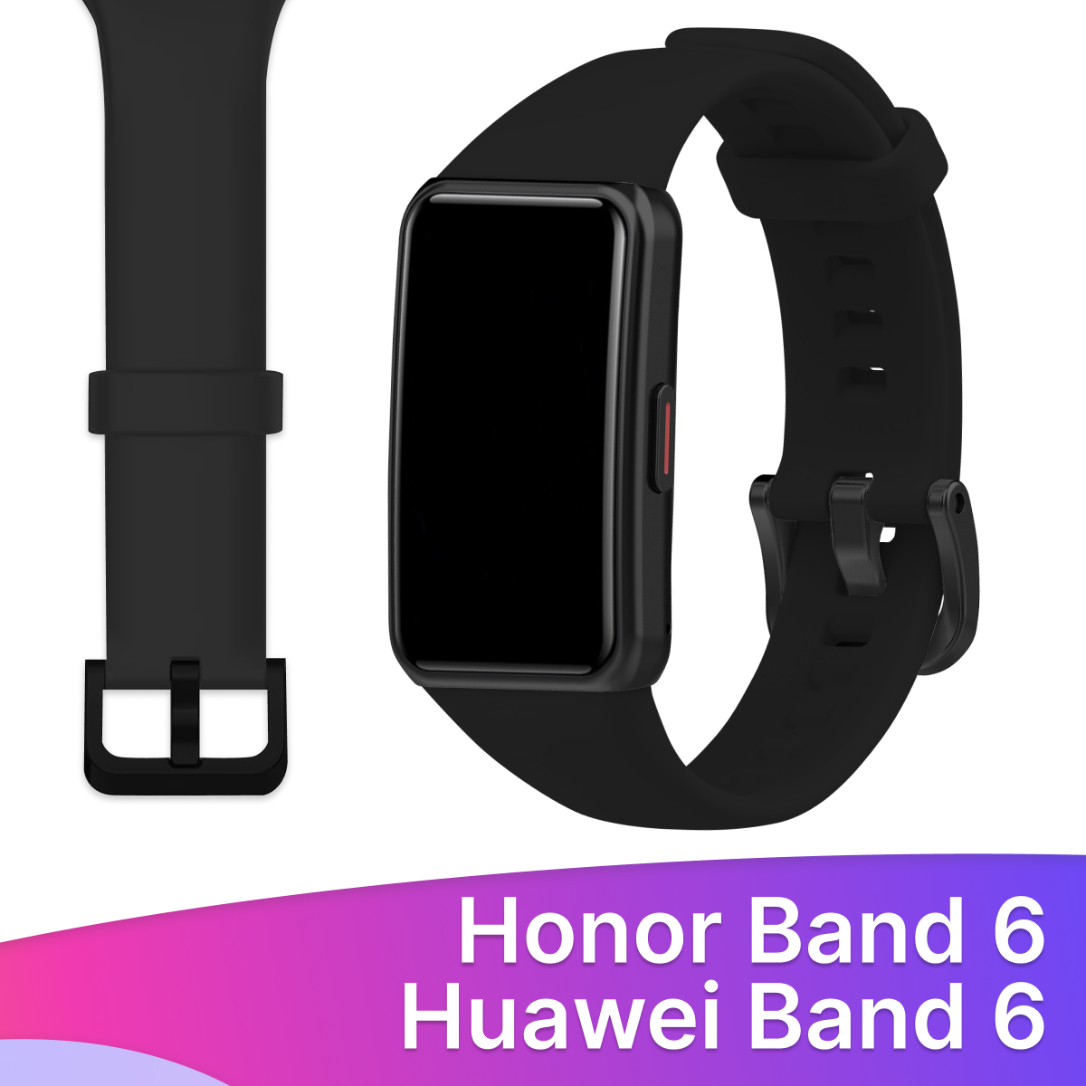 Силиконовый ремешок для Honor Band 6 и Huawei Band 6 / Сменный браслет для умных смарт часов / Фитнес трекера Хонор и Хуавей Бэнд 6, Черный 255 ₽