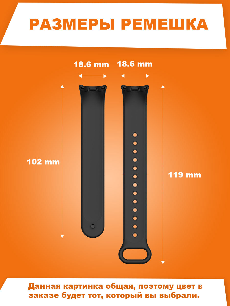 Силиконовый ремешок для Xiaomi Mi Band 8/9, с пластиковым фиксатором, оранжевый 394 ₽
