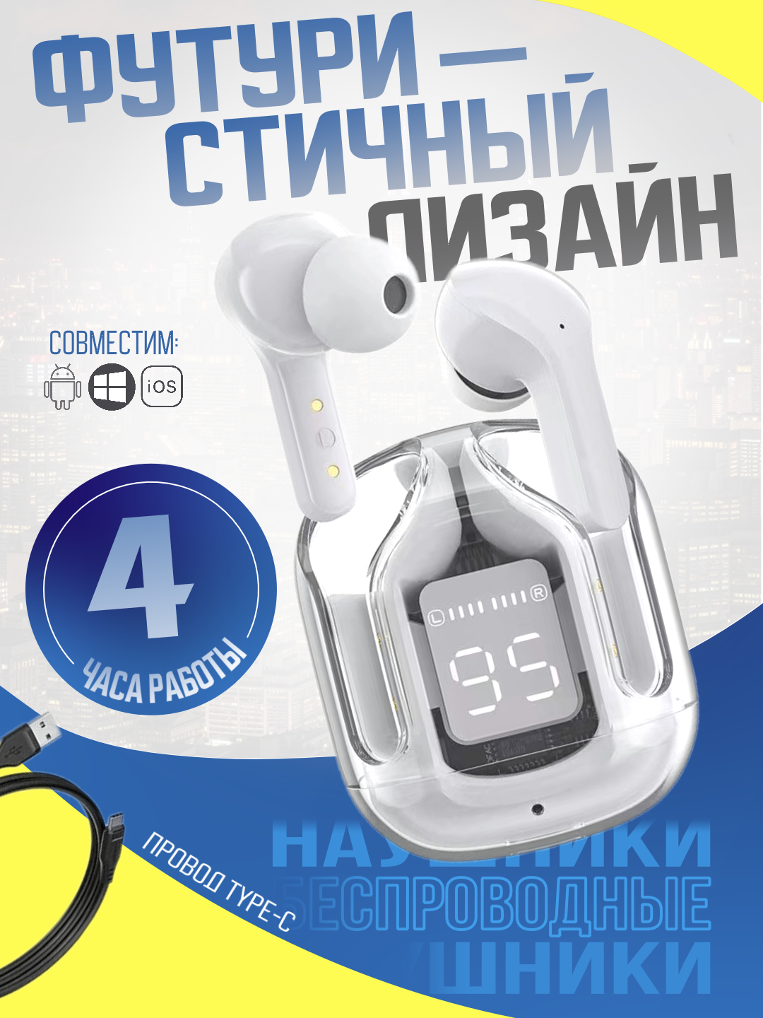 Наушники беспроводные Air31, TWS, вакуумные, c прозрачным шумоподавлением Bluetooth, наушники с цифровым дисплеем информация: