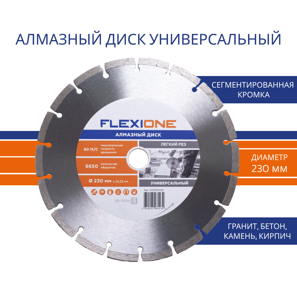 10 цен на Алмазный диск Flexione 230*22,2 мм, сегментный, универсальный