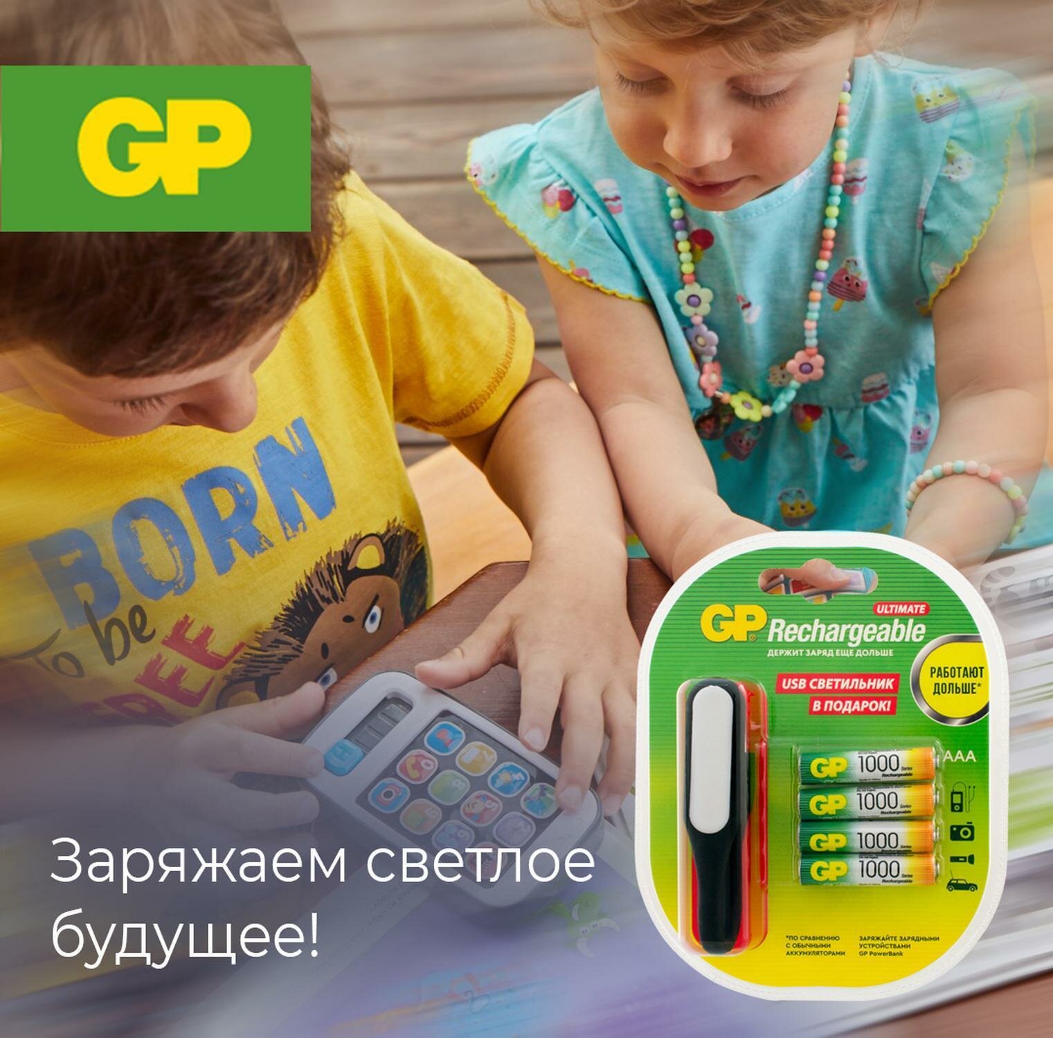 Отзывы на Аккумуляторы GP AAA (HR03), 1000 мАч 4 шт. + USBLED фонарь (GP100AAAHC/USBLED-2CR4)