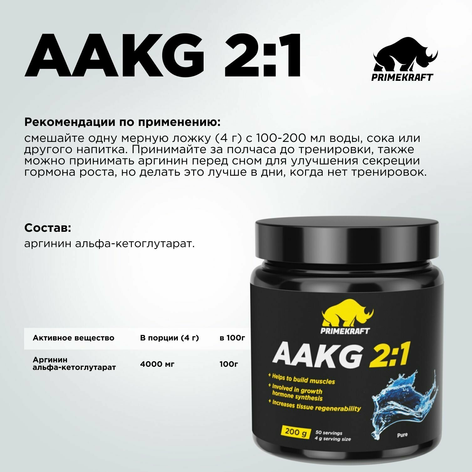 Аминокислоты аргинин PRIMEKRAFT AAKG 2:1 (аакг / АКГ) Чистый, 200 г / 50 порций