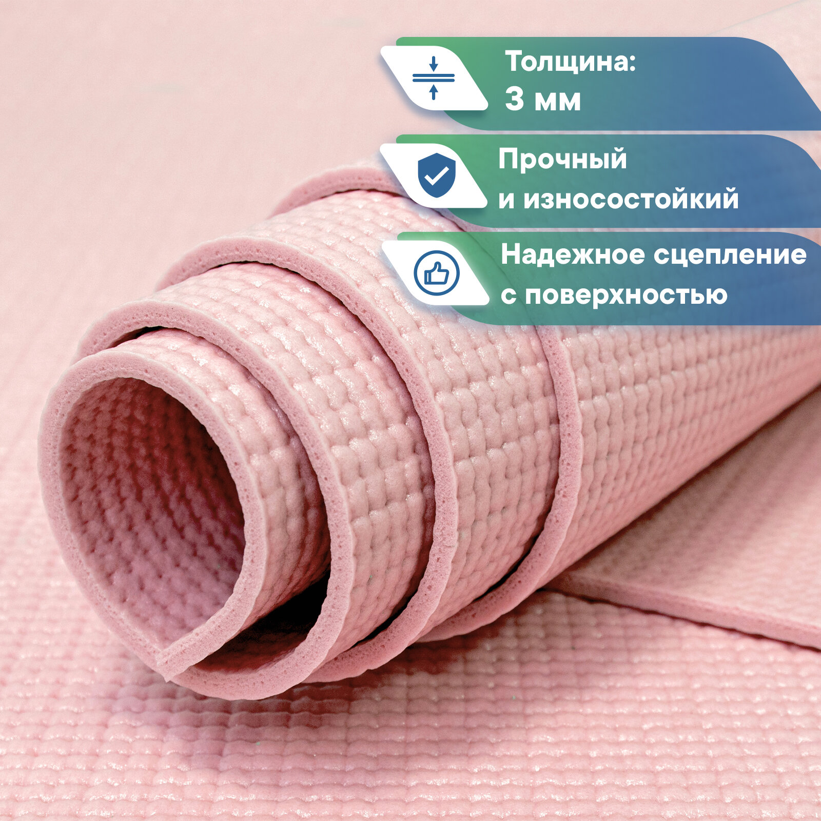 Коврик VILINA спортивный для йоги и фитнеса, растяжки, гимнастики 0,3 см 61х183 см пыльно-розовый информация:
