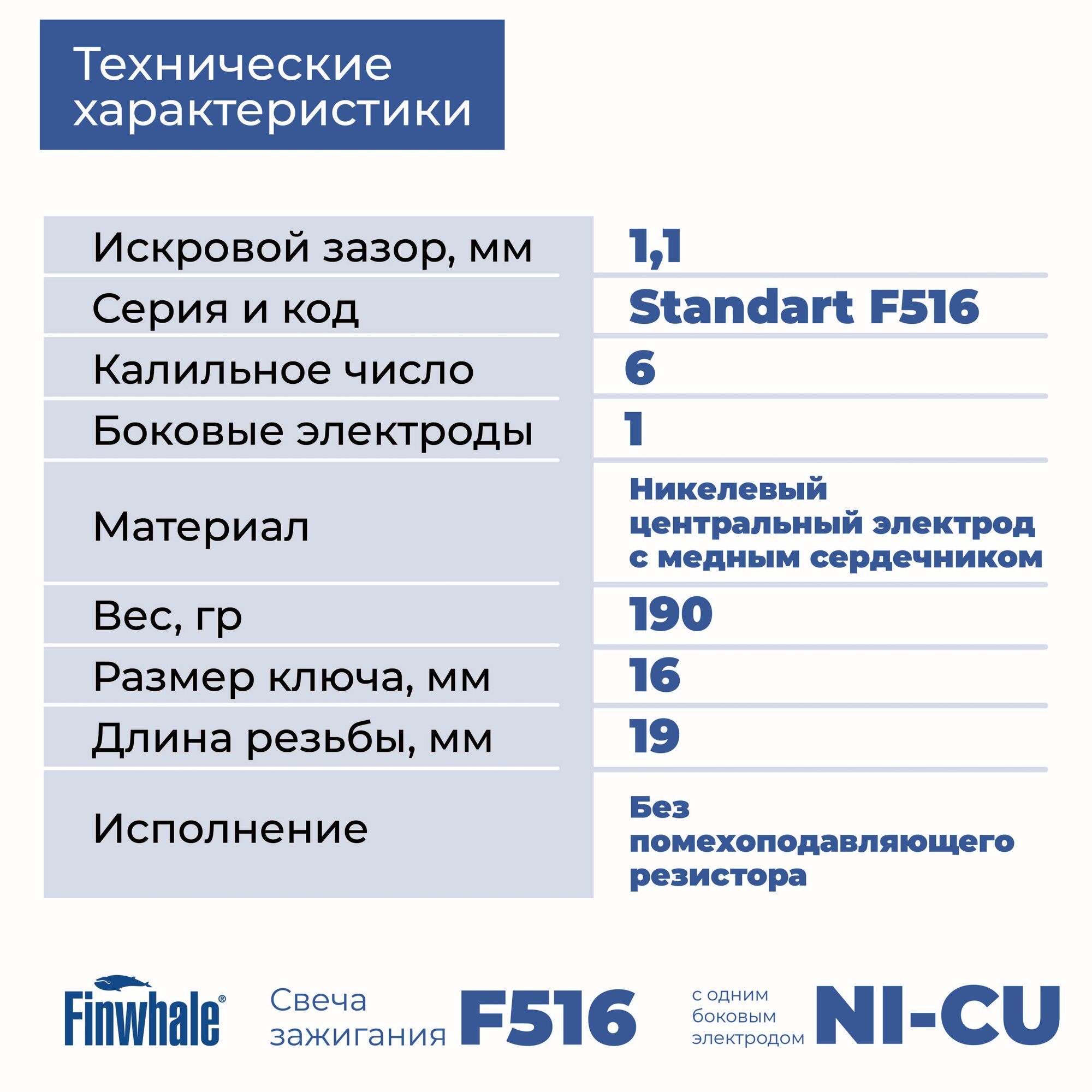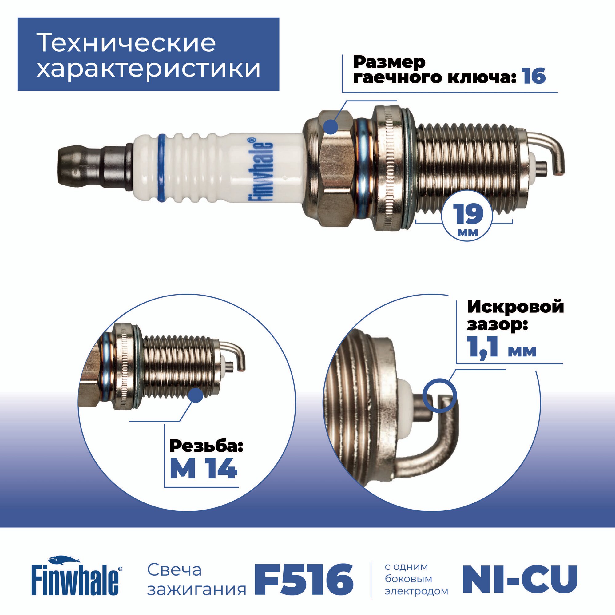 Свечи зажигания LADA (ВАЗ) 16 клапанов инжектор, Finwhale F516, 4шт. информация: