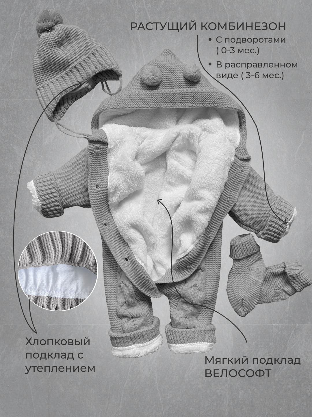 Конверт для новорожденного на выписку теплый вязаный 8 предметов в роддом серый информация: