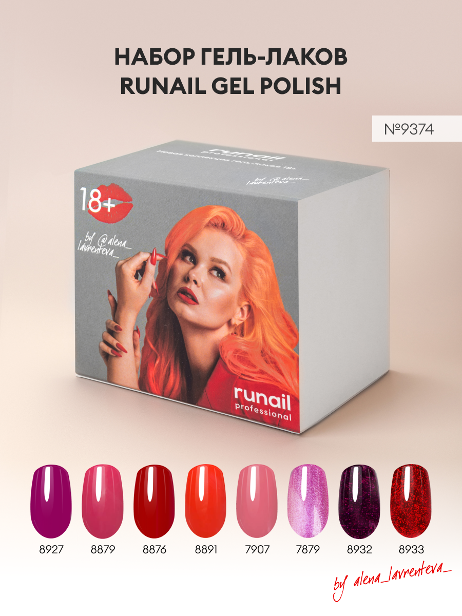 Набор гель-лаков/гель лаки для маникюр и педикюра/гель лак для ногтей/гель лаки набор runail GEL POLISH 18+ (8шт) №9374 информация: