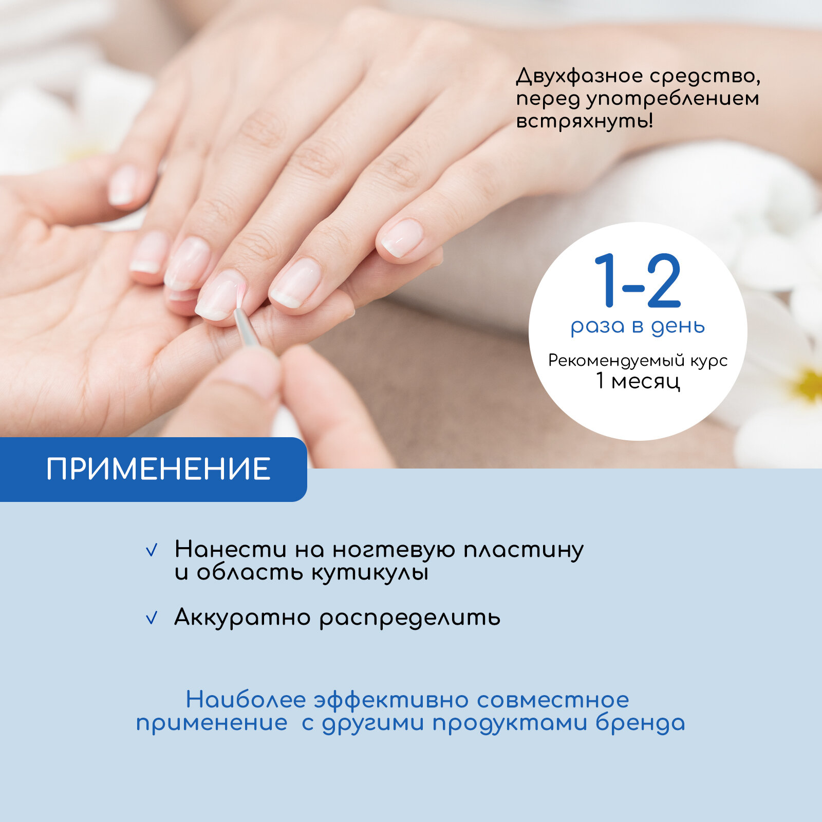 | Способ применения | Легкими массирующими движениями наносить на ногтевую пластину и область кутикулы несколько раз в день. |
