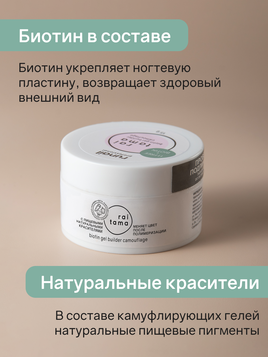 Гель для ногтей гипоаллергенный/камуфлирующий гель для моделирования и наращивания/гель для маникюра и педикюра с биотином RAITAMA №8256