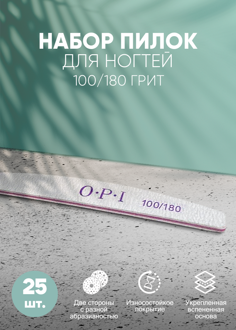 Набор пилок OPI для ногтей, дуга, 100/180 грит 25 шт/ Одноразовые пилки для маникюра и педикюра/ Пилки для ногтей/ Маникюрный набор.