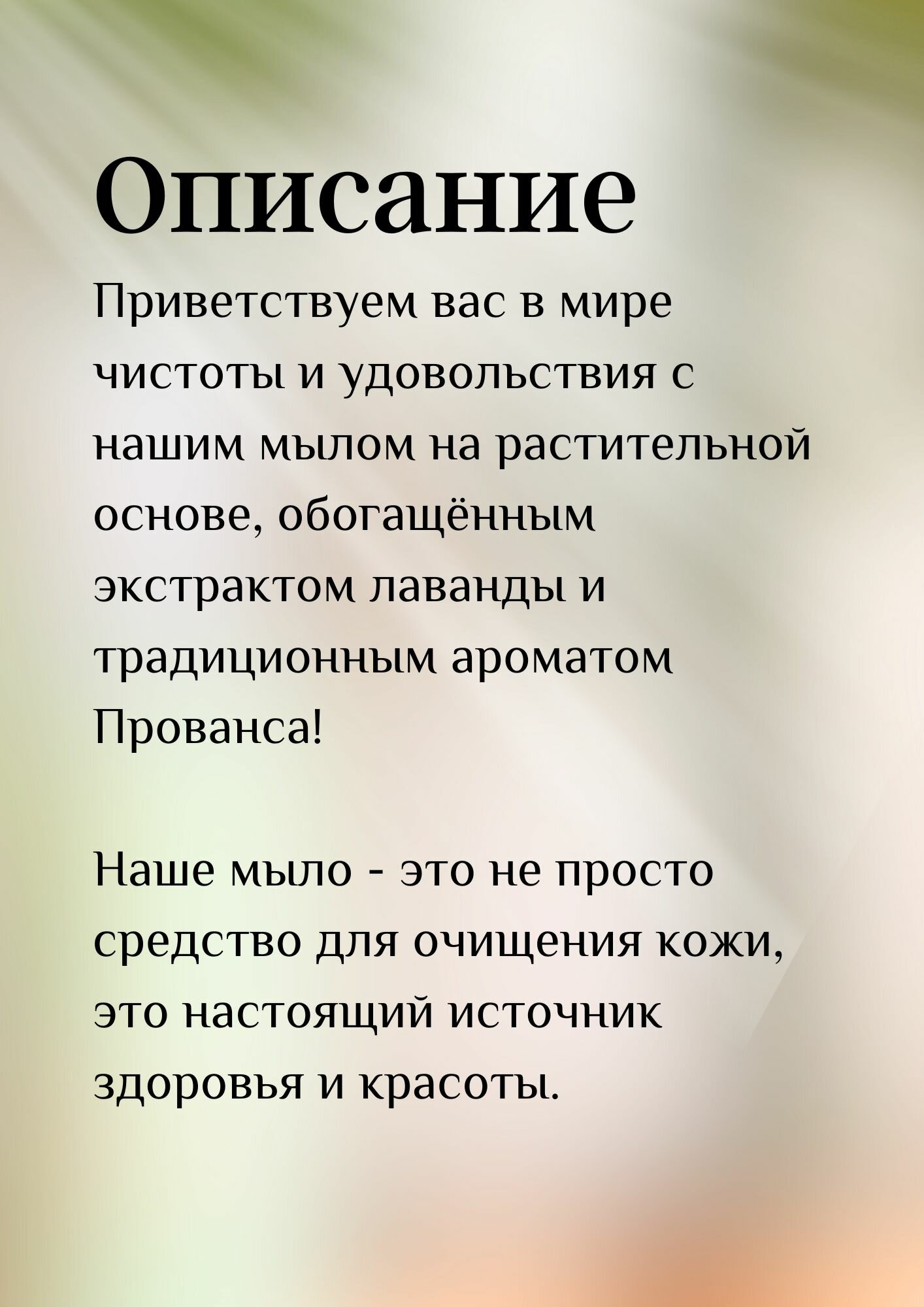| Масла и экстракты | апельсиновое масло / аргановое масло / оливковое масло / экстракт лаванды |
