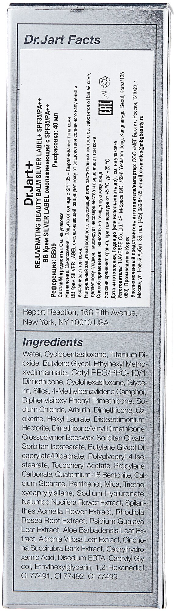 Dr.Jart+ BB крем Rejuvenating Silver Label, SPF 35, 40 мл информация: