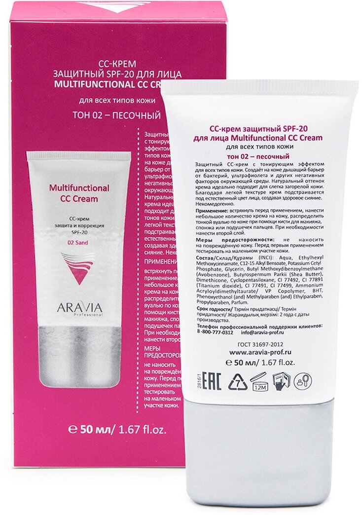 CC-крем защитный SPF-20 Multifunctional CC Cream Sand 02 туба 50 мл информация: