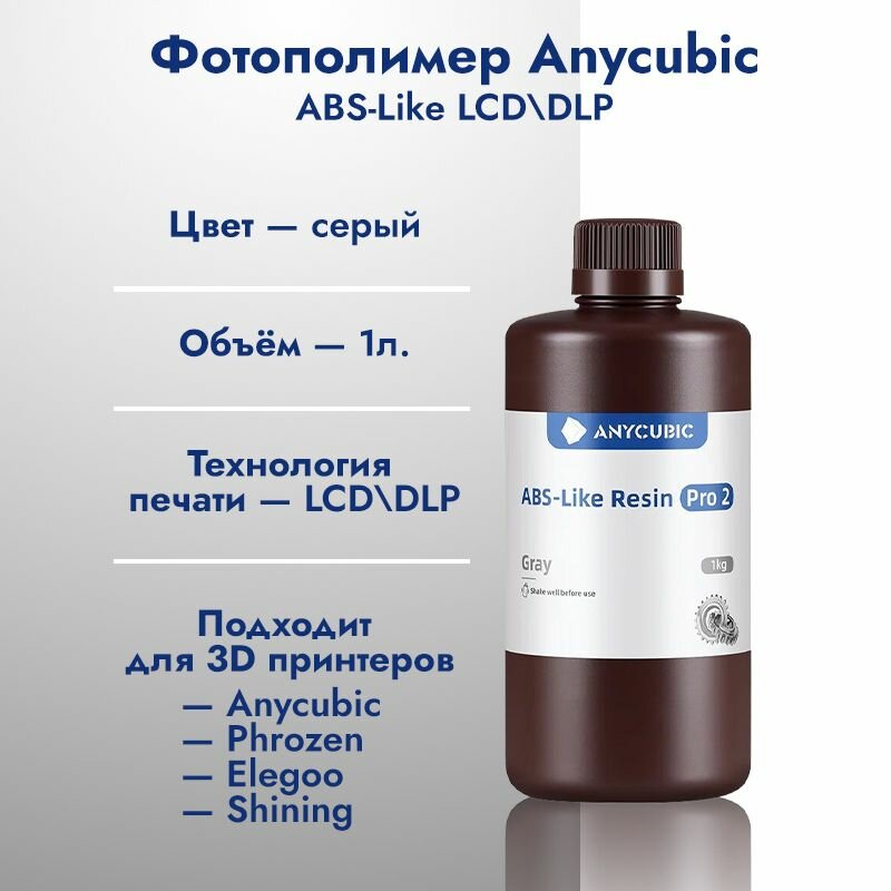 Фотополимерная смола Anycubic ABS-Like Resin Pro 2 Серая 1л информация: