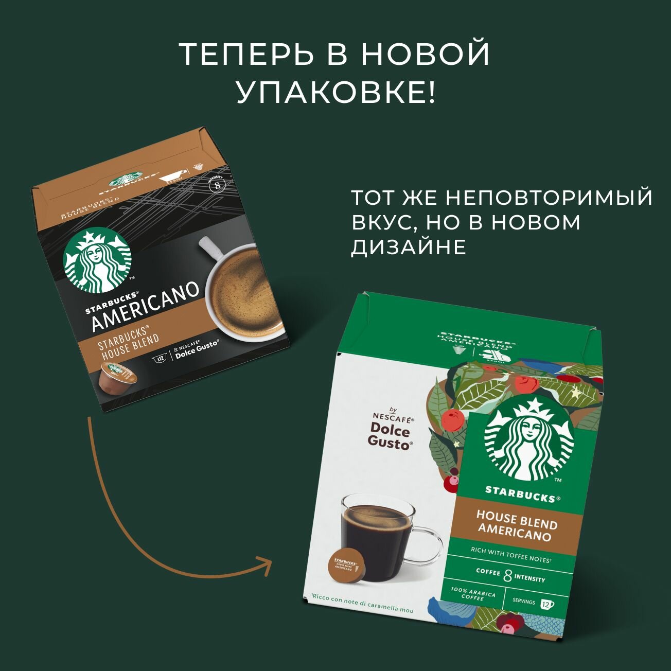 Кофе в капсулах Starbucks Dolce Gusto Caps House Blend, Старбакс в капсулах для кофемашины Нескафе Дольче Густо, эспрессо, 12 штук